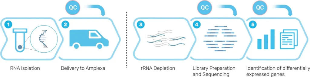 To unravel various biological systems, it is essential to understand the complexity of transcriptomic changes. Bulk RNA sequencing serves to obtain a high-throughput representation of average transcriptomic changes between two or more conditions. Depending on the type of samples, you can use bulk RNA sequencing in: