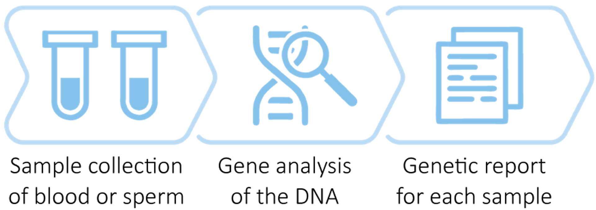 Our comprehensive panel for sperm and egg donors are flexible but includes the following genes as a standard: